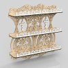 Дерев’яна полочка з трьома полицями і витічними орнаментами, включаючи хрести та складні геометричні форми. Ідеальний акцент для будь-якої кімнати.
