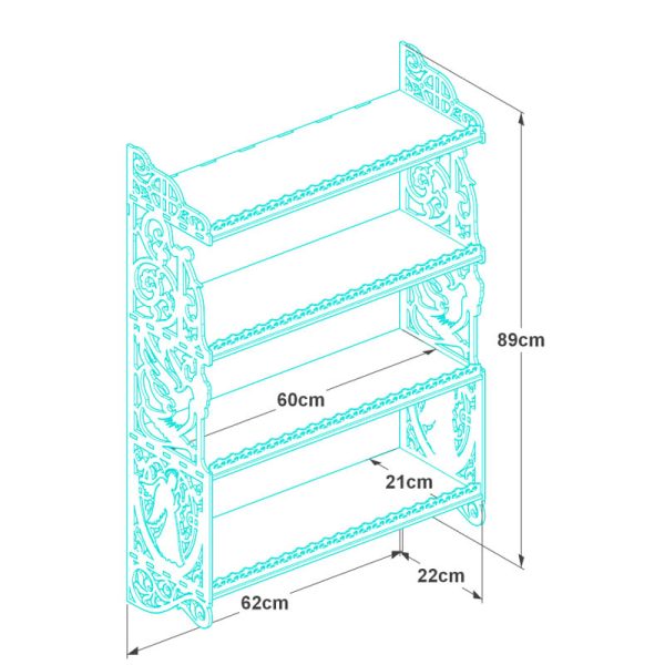 Поличка для ікон з якісної фанери з ажурним різьбленням. Чотири рівні дозволяють розмістити ікони різних розмірів. Ідеальне рішення для дому.