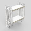 Двоярусна дерев’яна поличка з ажурними бічними стінками та різьбленим декором.